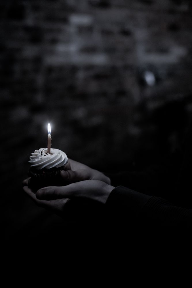 The gentle flame of the birthday candle made his eyes shine.