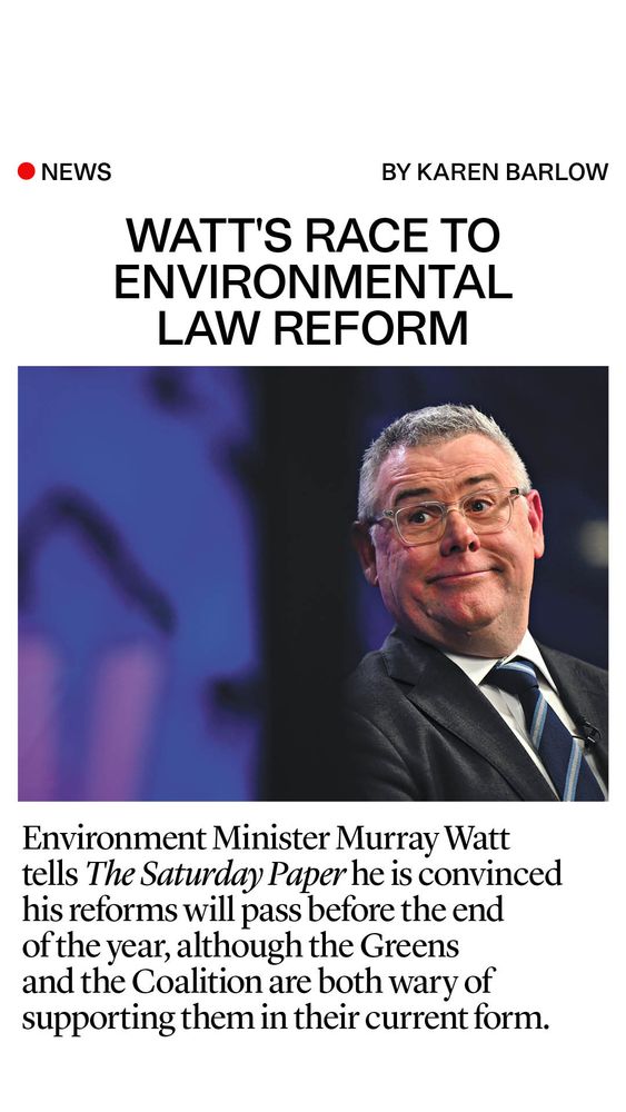 Environment Minister Murray Watt tells The Saturday Paper he is convinced his reforms will pass before the end of the year, although the Greens and the Coalition are both wary of supporting them in their current form. Read more: satpa.pe/0ksuj0l