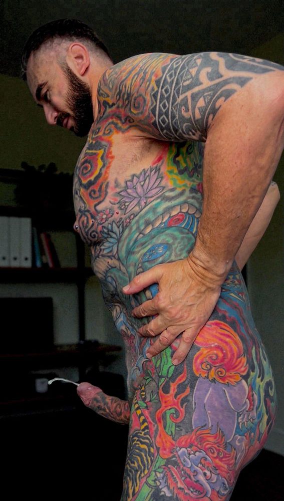 Turned into a fuckable object of art #fullbodytattoo #gayporn #thinkedjink #jacqueskiros