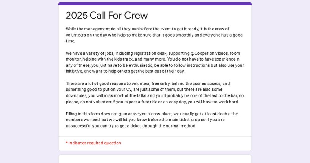 It can be a hard but fun day. A really good way to network and improve your CV if just getting started or to give back if you've been around for a while.
