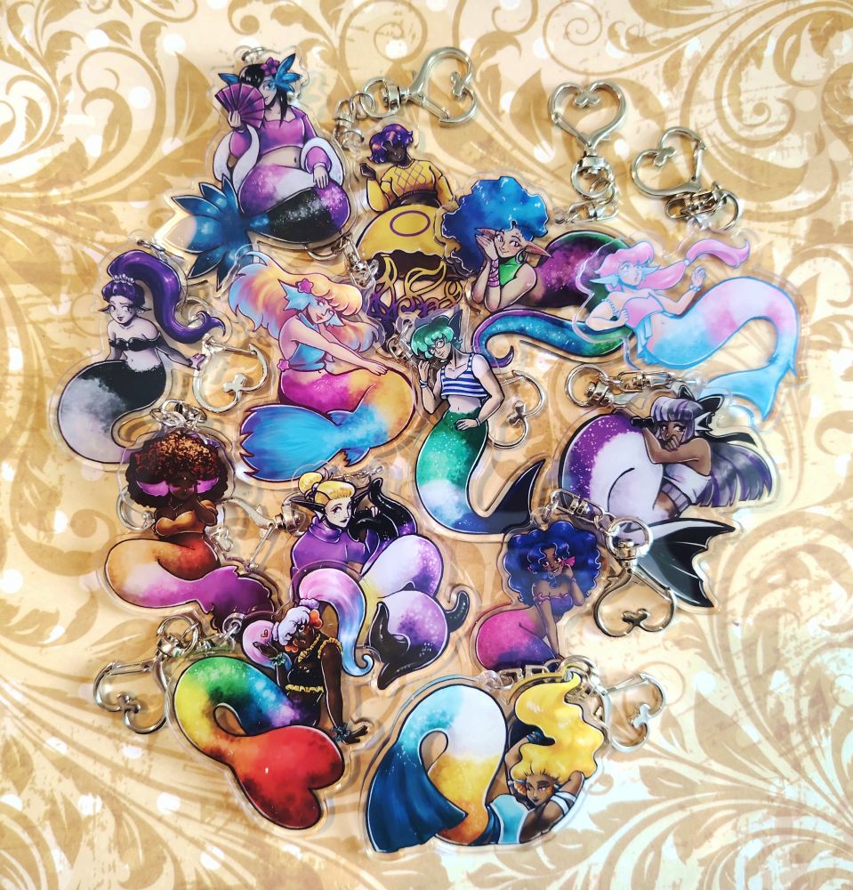 Selling in ETSY shop my Pride Mermaid keychains!