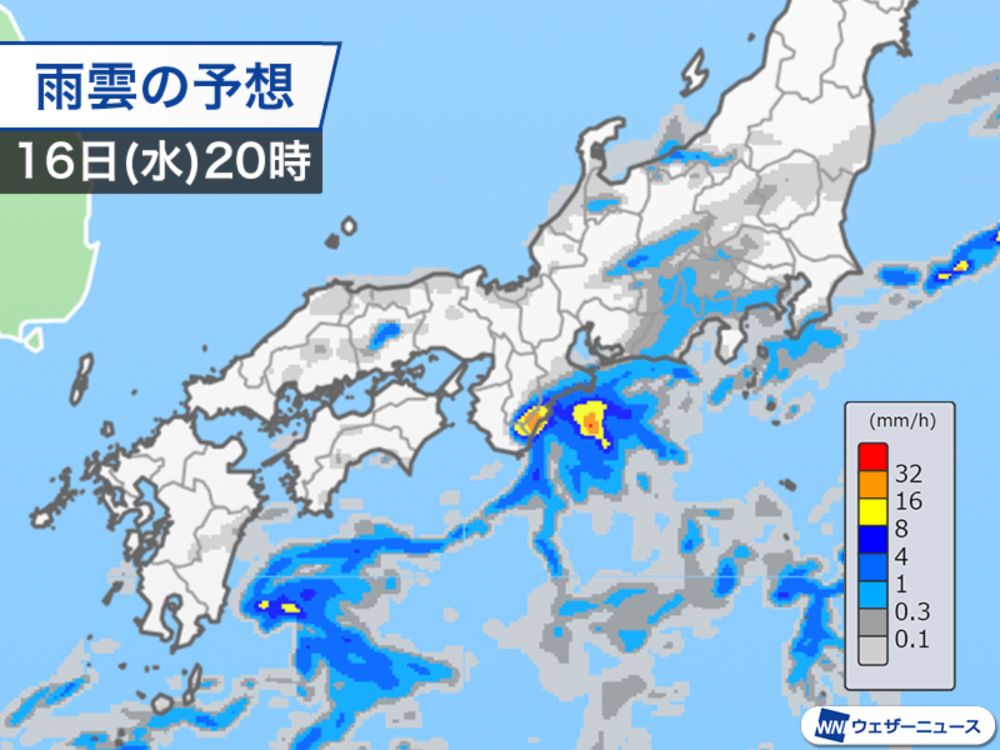 今夜から明日17日(木)にかけて、太平洋側沿岸部ほど急に強まる雨に注意が必要です。