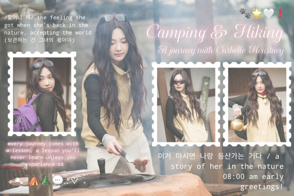 { 자연 } : every path, every journey—nature will forever be a part of her. 🧺👧🏻=♡ the lesson she will never gain unless she experienced it, her journey written 🍂💬 —─ ׂ ۪ ✸