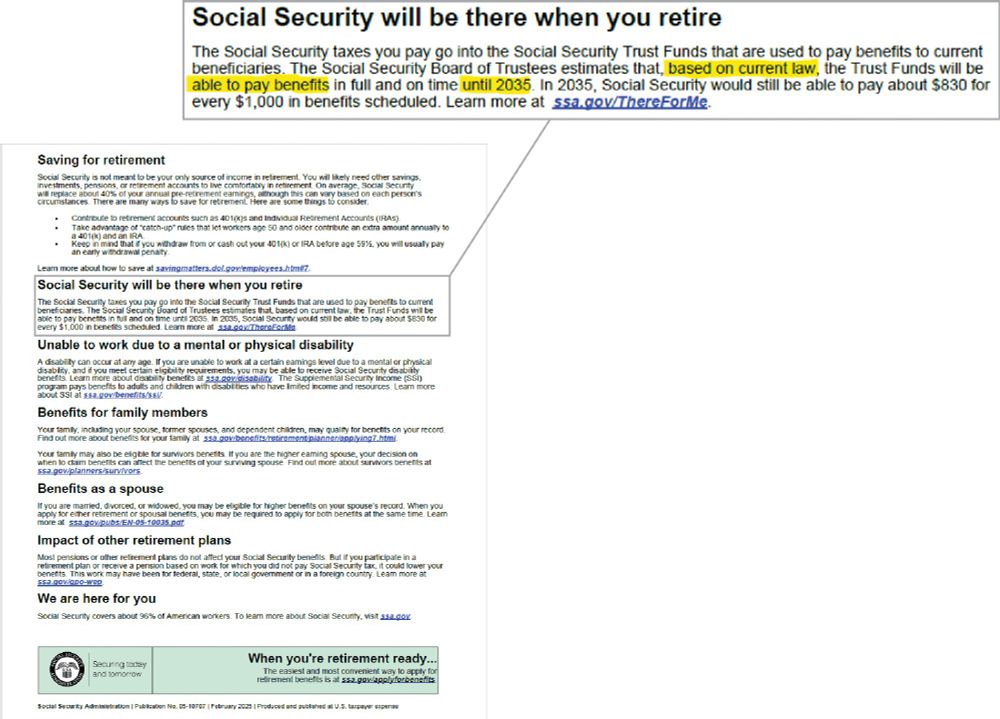 NO MORE SOCIAL SECURITY AFTER 2035!!! THAT IS IF 47 DOESN’T CUT IT FIRST!!! Or, maybe this is why he says he's not going to do anything with it...it'll just end.