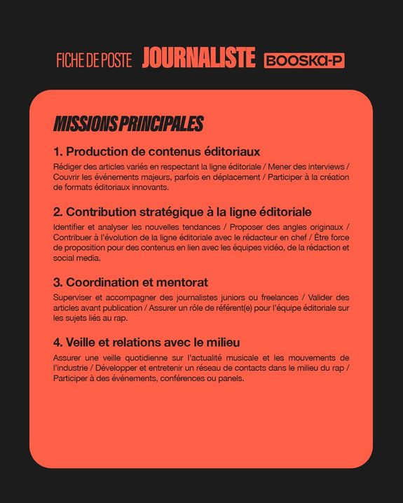 Le média rap Booska-P recherche un.e journaliste pour sa production éditoriale.