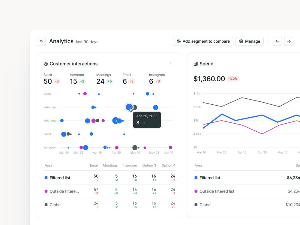 A flexible analytics panel that lets you tailor metrics, compare customer segments, and uncover actionable insights in your data.