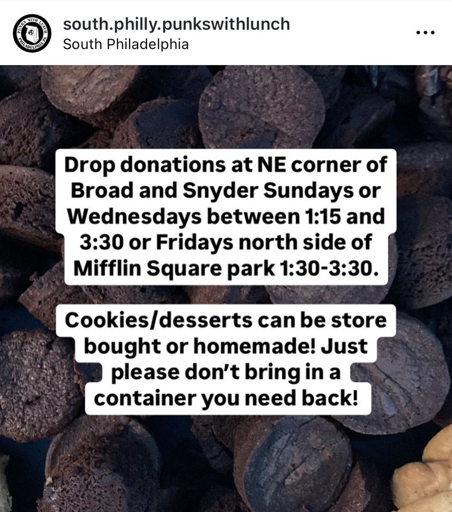 Philly: I’ll be giving out fresh baked cookies tomorrow at mifflin park with this mutual aid group