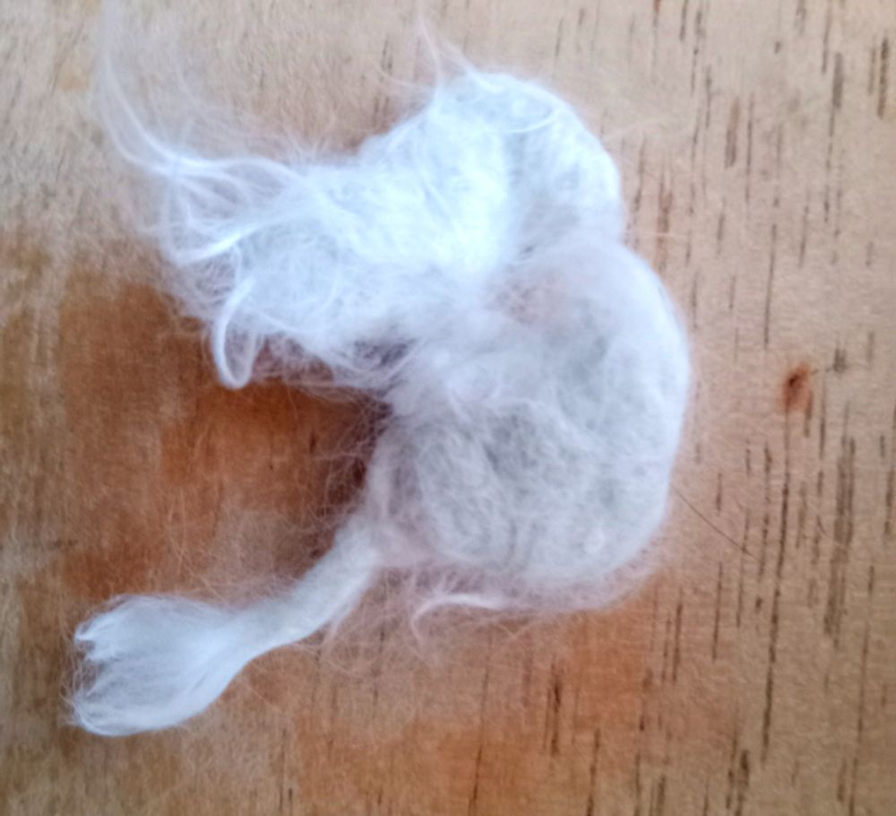 A clump of matted fur I got off of Sophia's chest. I've never had a long-haired cat before. What a pain in the ass. She doesn't like to be combed. I have to trap her in the bathroom. It's a chore. It's freaking amazing how tight it is.