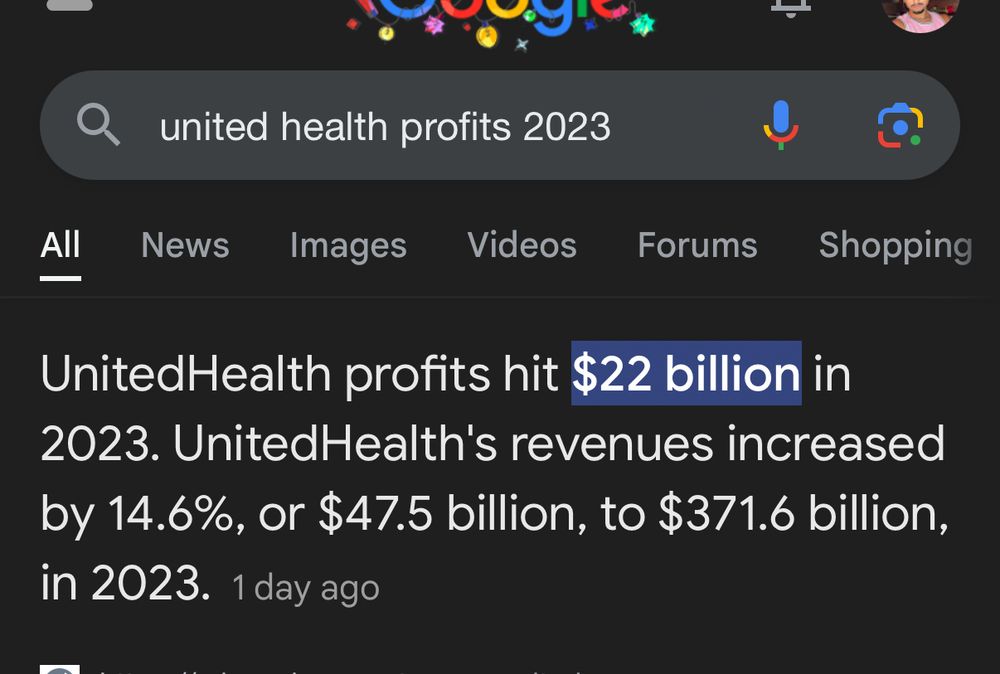 He’s a modern day hero. UH made $22 billion in PROFITS, not revenue but profits off of the backs of the American people. They also had the highest rate of denied medical claims.