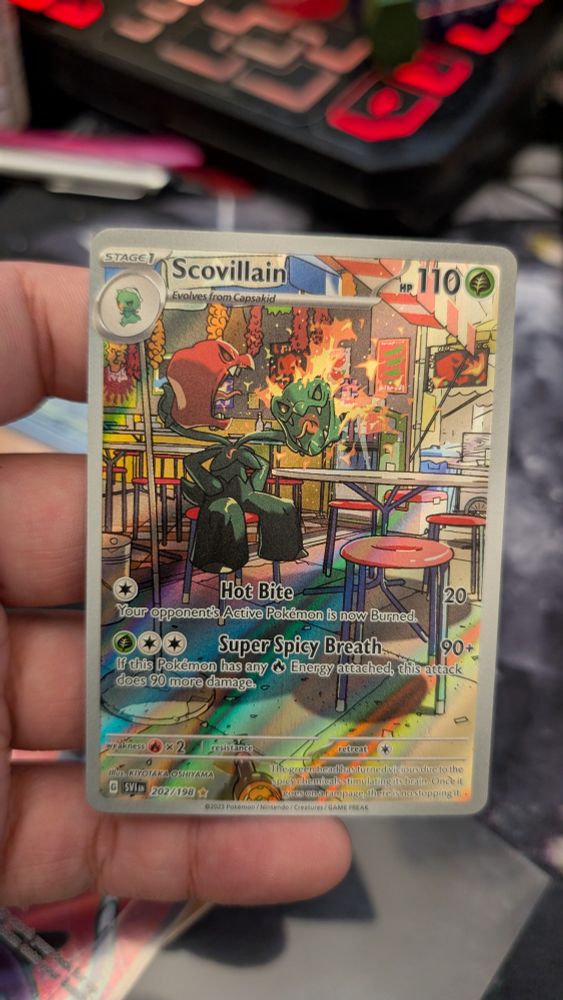 Ceruledge is my favorite Pokemon! This is my avorite card I've ever pulled! I pulled it out of my first surging sparks pack! My girlfriend bought that pack for me c: I'm gunna send it in to PSA to get graded, cause I love it so much, and I want a fancy box for it!