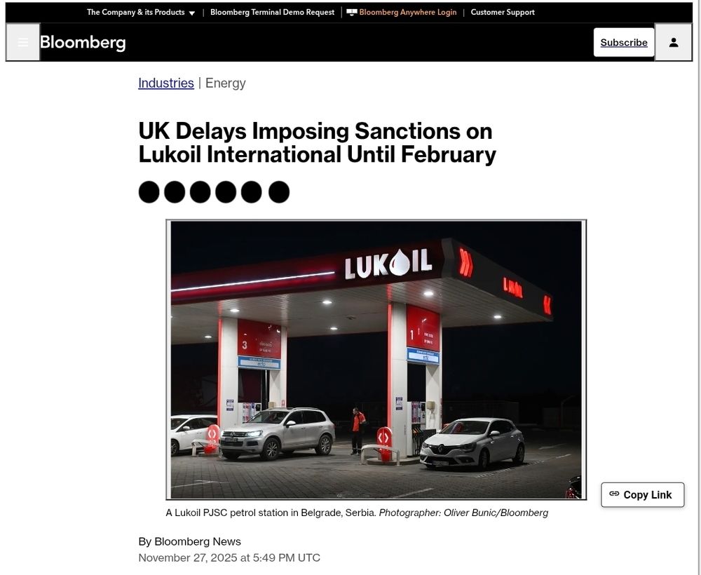 The UK government delayed imposing sanctions on the international unit of Russia’s Lukoil PJSC, the latest example of western governments treading carefully as they target the energy giant.