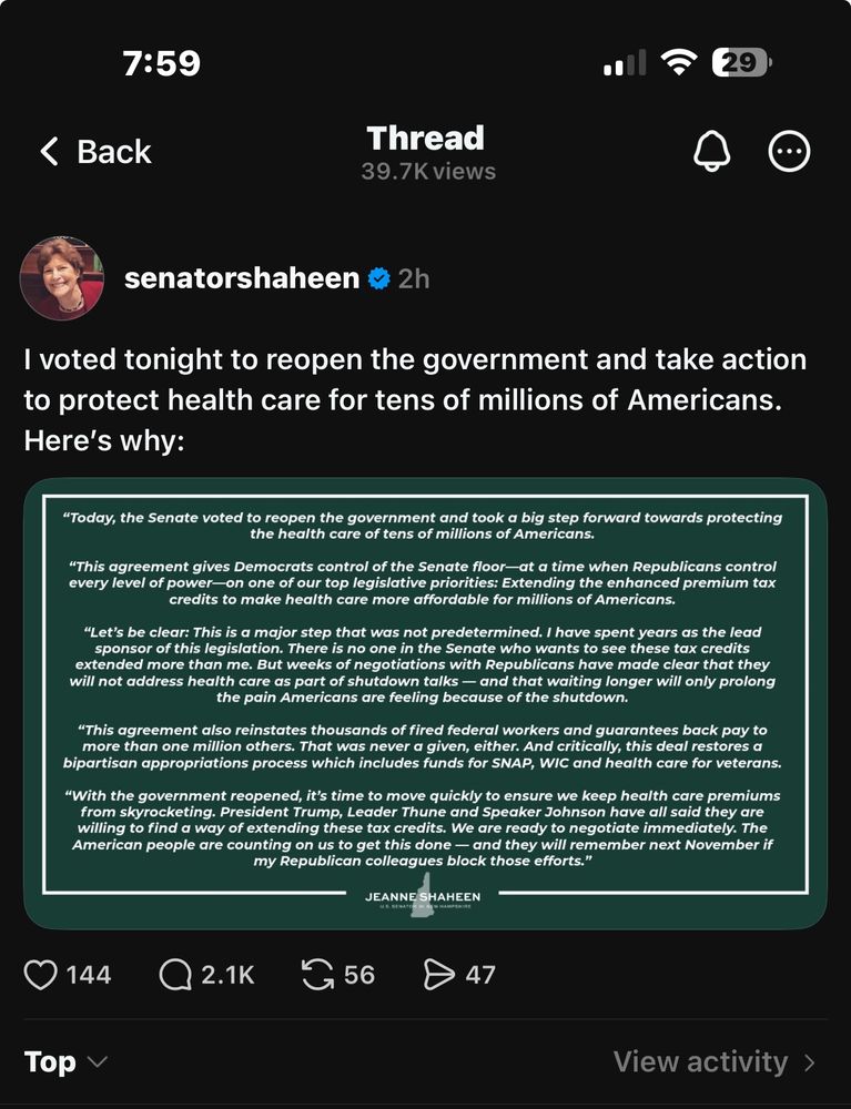 This reply to @shaheen.senate.gov attempt to justify her betrayal just nails it. From threads.