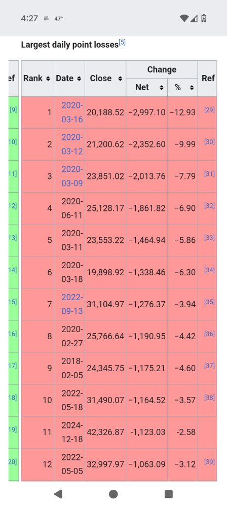The top 7 losses by points all happened under Trump.