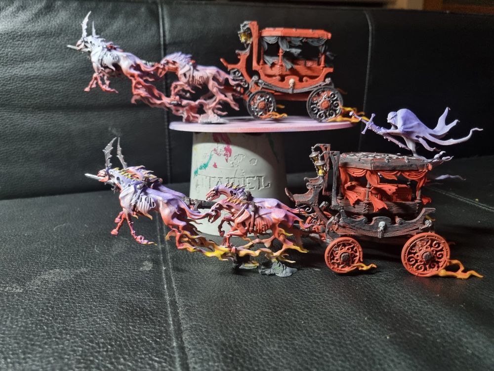 It's almost midnight, and instead of painting the 50+ ghosts or starting on basing texture, I am cutting up the coaches I just painted for some reason.....