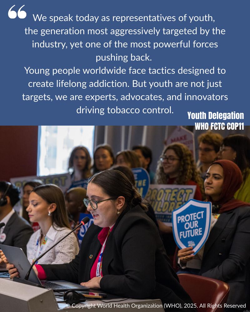 📣"establish a mechanism that institutionalises youth participation within the WHO-FCTC, ensuring we are recognised ... and empowered to contribute."