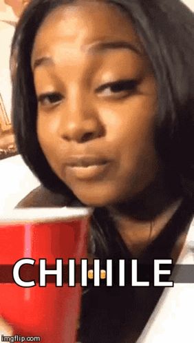 ALT: a woman is holding a red cup with the word chiihile on it