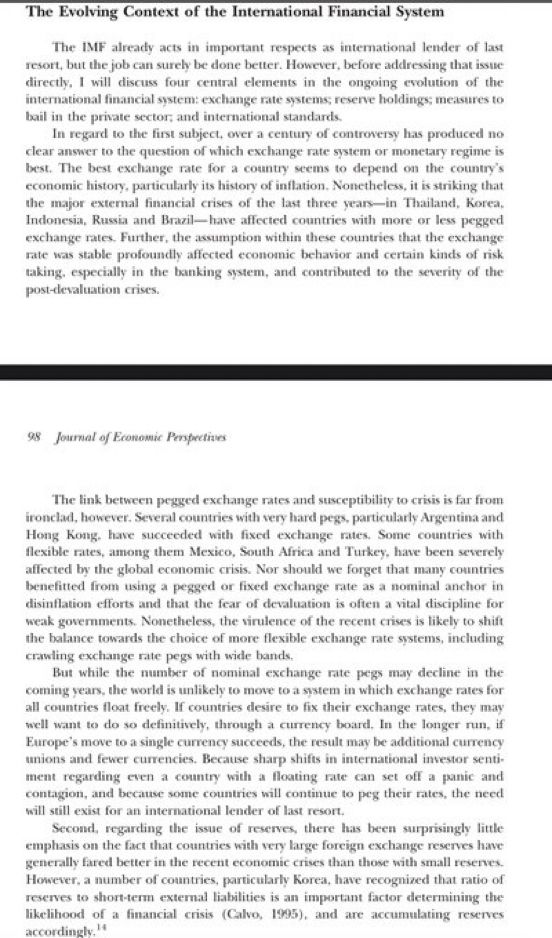 His speech on need for an international lender of resort which argued for IMF to play that role. Over time as $-funding has become more important, CB swap lines led by the Fed mimic part of that role