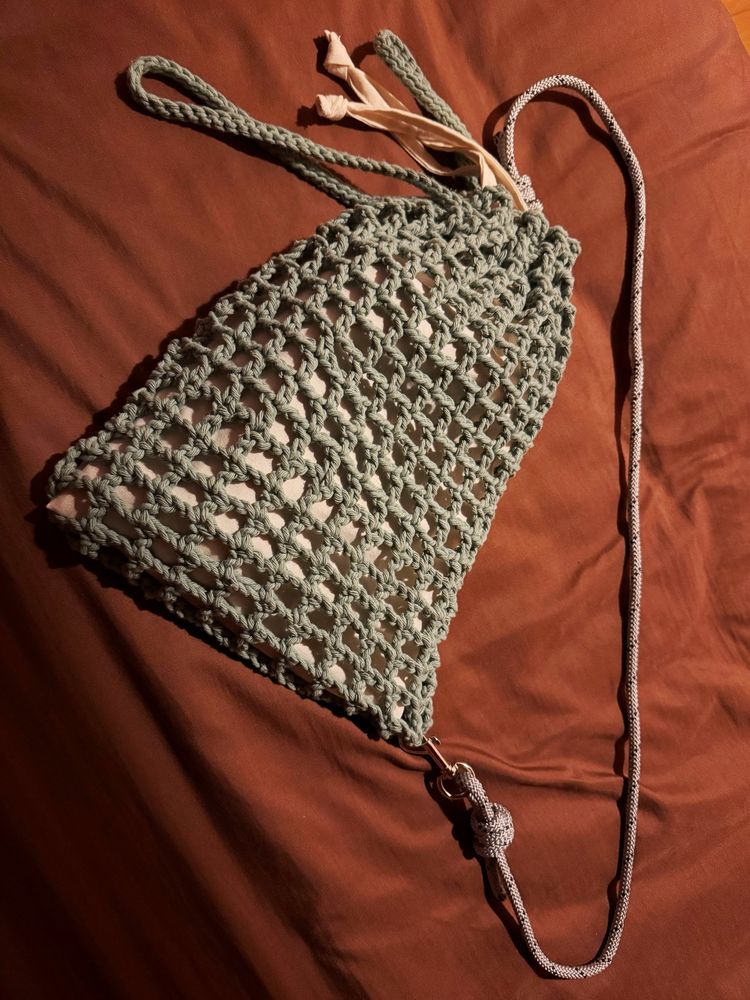 帽子につけようと思って編んだ星がデカすぎたのでなんとなく編んだ巾着。星に合わせて作ったから中途半端な大きさ!