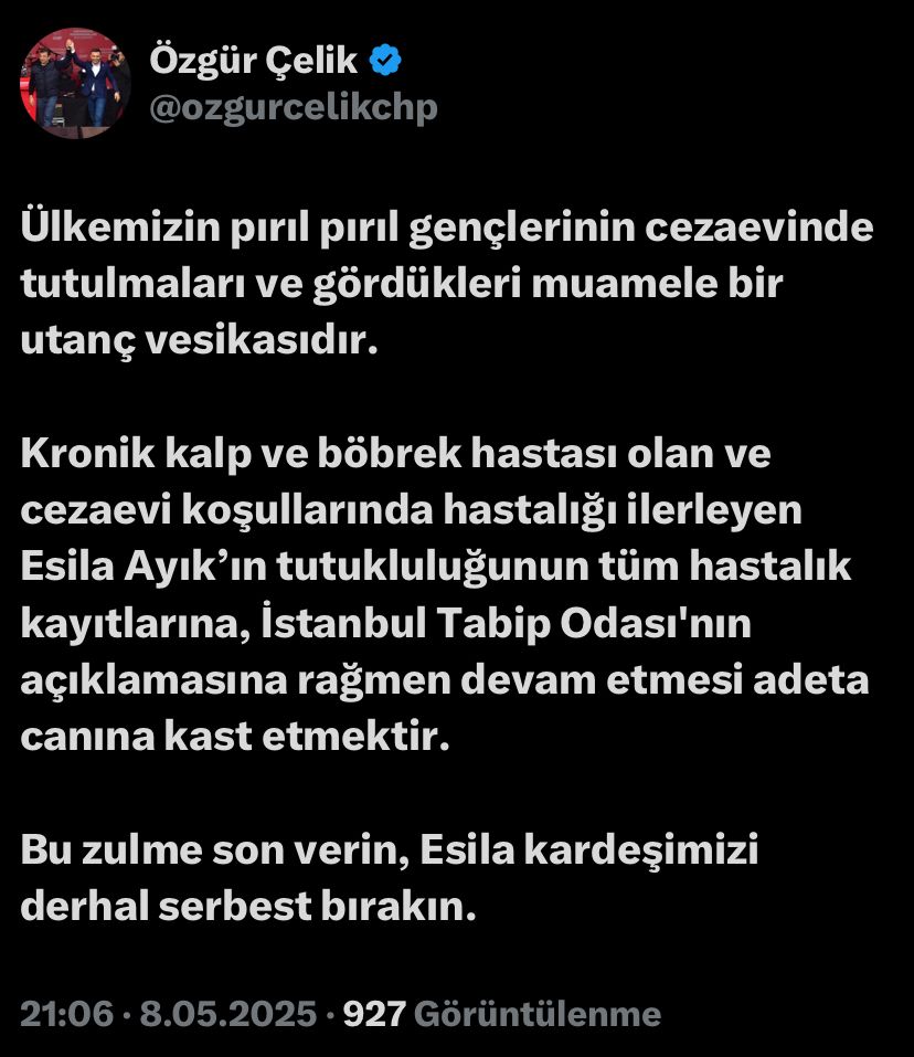 - Bu zulme son verin, Esila kardeşimizi derhal serbest bırakın.