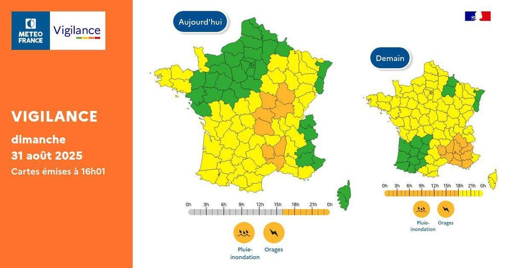 🟠 3 départements en Vigilance orange