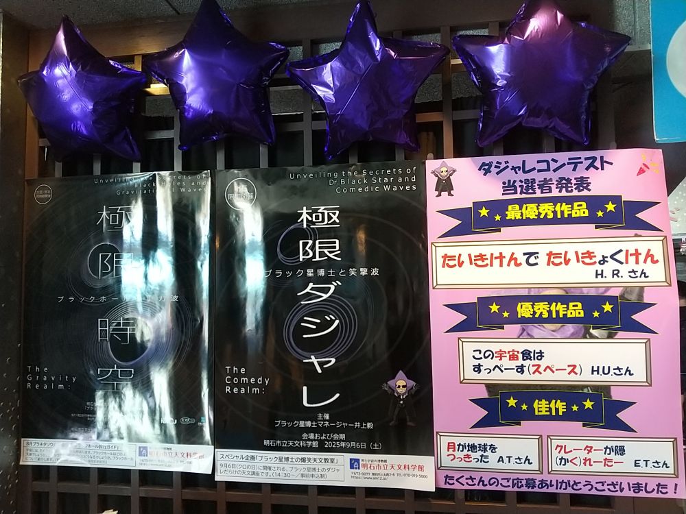 今日はじめて天文科学館に来たらしいお客さんが「なんか科学館てダジャレ好きなんだねえ」と話していたけど、否定はしません。ていうか団体さんがこの回に入っていたけど、大丈夫だったのか(^_^ゞ