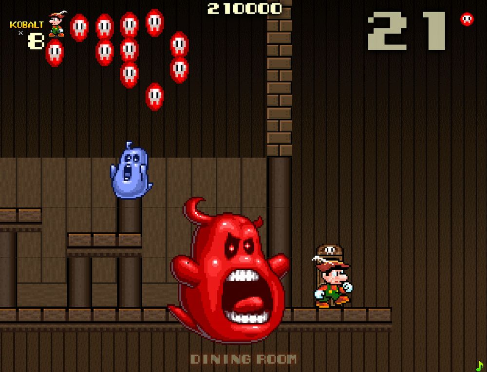 I remember another game with the same two characters that was a hub area full of doors that lead to a bunch of levels, and after completing some you could fight the red ghost.