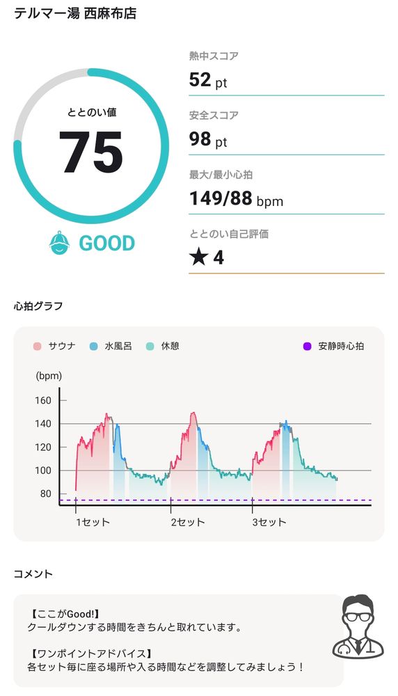 が、サウナウォッチがシャワー誤作動でまさきのリセットされてたらしく、記録つかず。