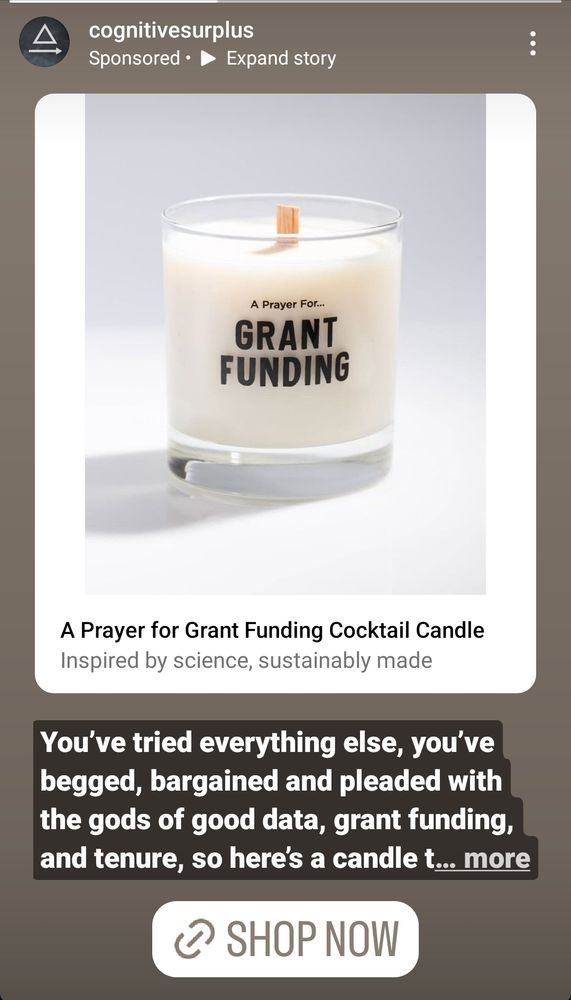 Not cool when Instagram is advertising to you a grant funding candle @erickaweathers.bsky.social 😂