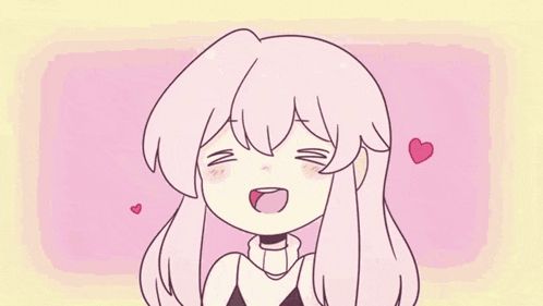 ALT: a cartoon of a girl with long pink hair and hearts around her .