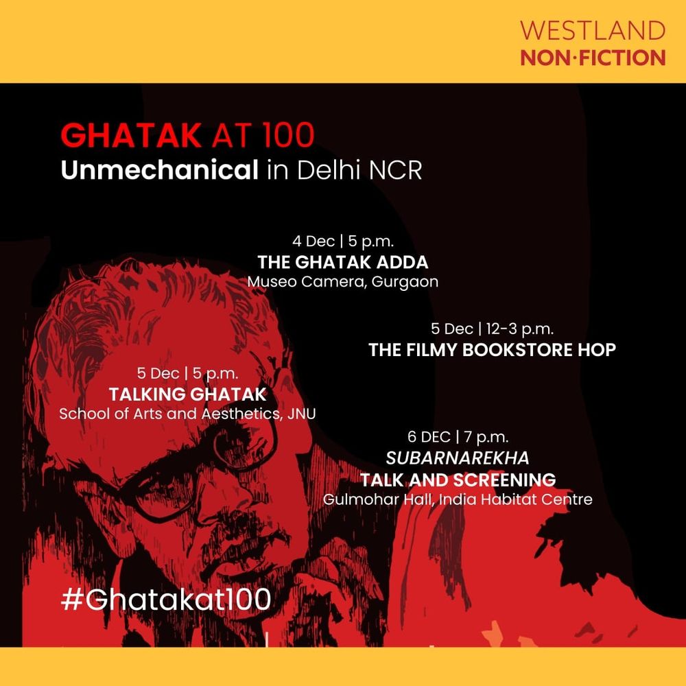 Join us for the #Ghatakat100 adda at Museo Camera, Gurgaon, on the 4th of Dec with Shamya Dasgupta, Jai Arjun Singh and Sanghamitra Chakraborty!