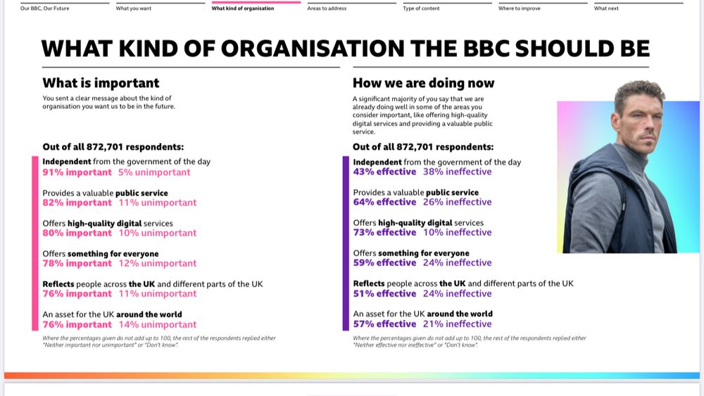 Here’s the results of the BBC’s public satisfaction survey that was released in October. I can’t think why they bothered to do it. www.bbc.co.uk/ourbbcourfut...