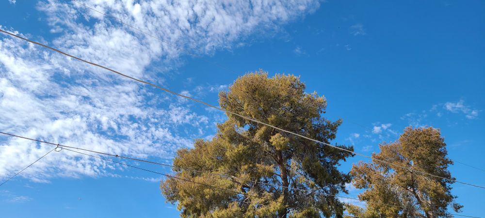 Setting up shop here, looking at the blue sky.