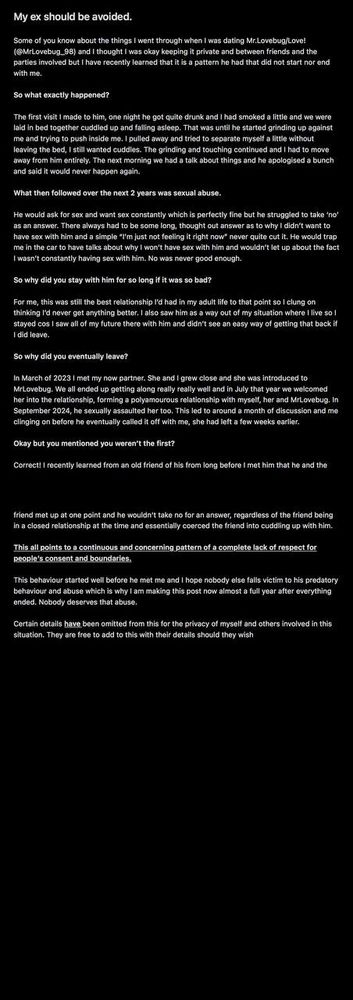 My personal statement and perspective regarding the actions of our ex boyfriend.