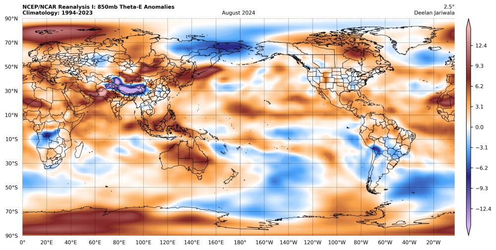 500mb and 850mb theta-e anomalies, as well as the difference between them.