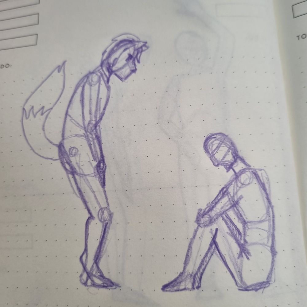 More sketching and learning. Today with a video by the lovely @ashcoyote.bsky.social. love your tutorial and I'll be sketching to it more over the coming days