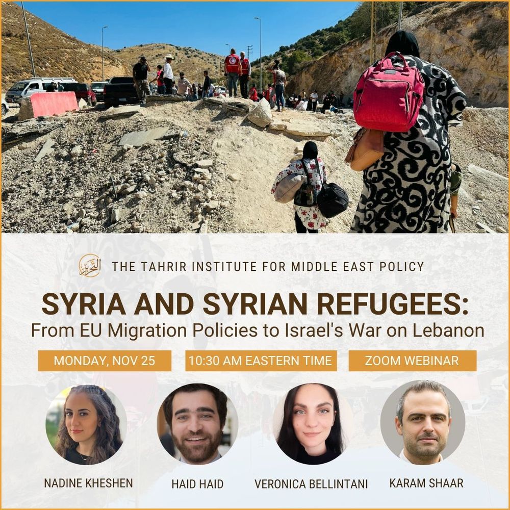 Join TIMEP for a virtual event on Syria and the situation for Syrian refugees amidst EU migration policies and Israel’s war on Lebanon with Haid Haid, Veronica Bellintani, Karam Shaar, and Nadine Kheshen.