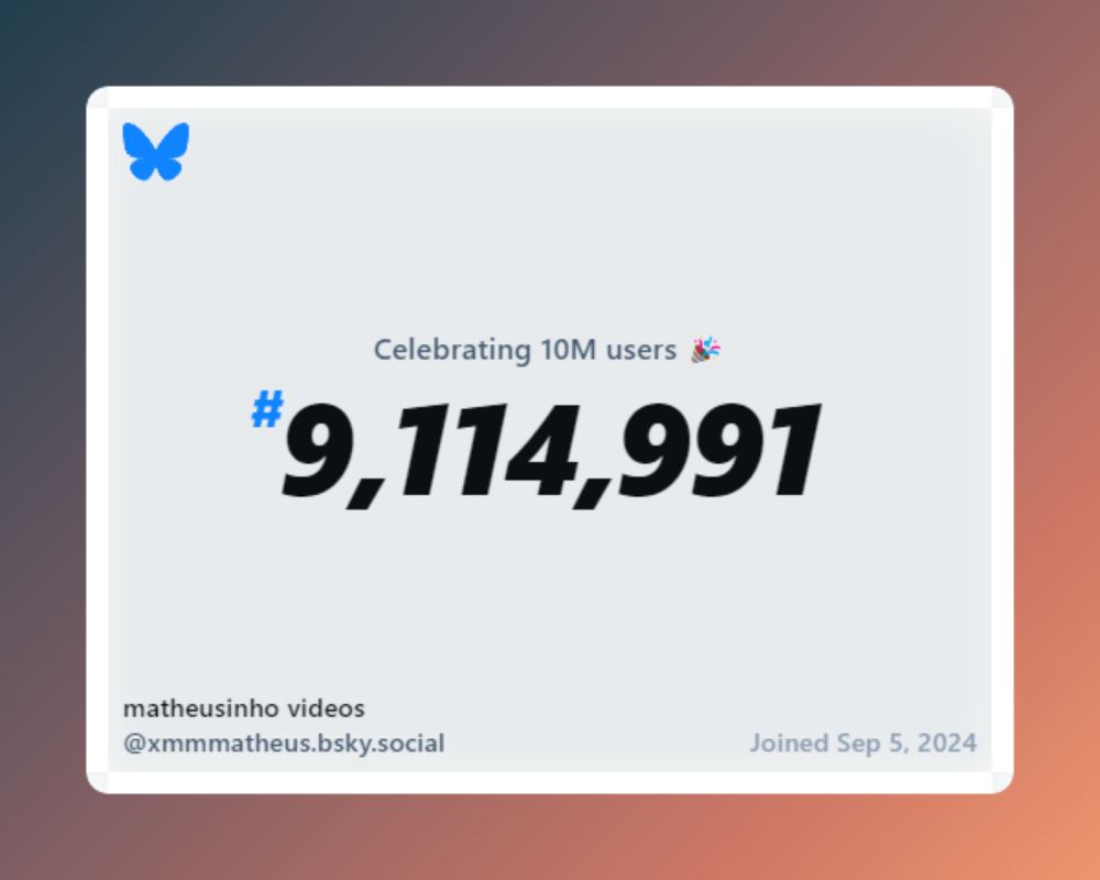 Bluesky now has over 10 million users, and I was #9,114,991!