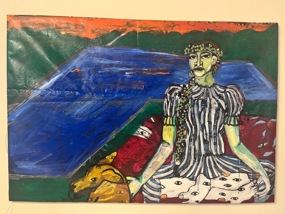 Game on dachshund painting dude