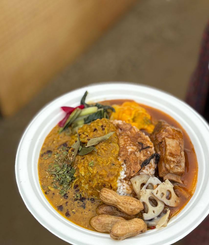 これはと入店、カレー頼むとまっくんがベジの時に使ってるバナナの葉にのっけていいかきいてきたのでもちろんOK!