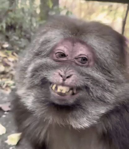 ALT: a close up of a monkey 's face with a big smile on it .