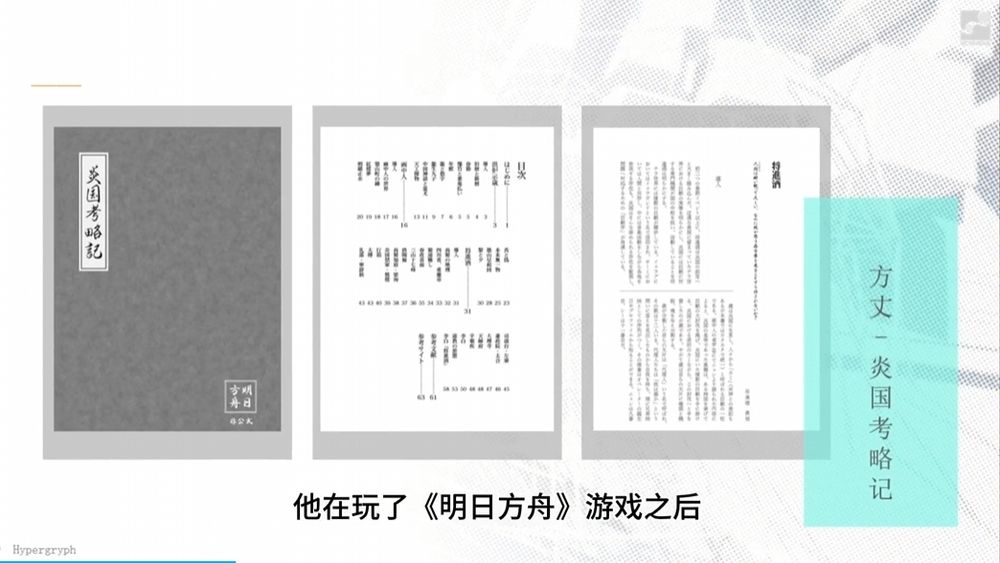 11月7日に上海にあるゲーム博物館にて、Hypergryphが海外へ中国の文化を広めるプレゼンをしたそうなのですが、その中で私の作った炎国考察本や考察記事が紹介されたそうです