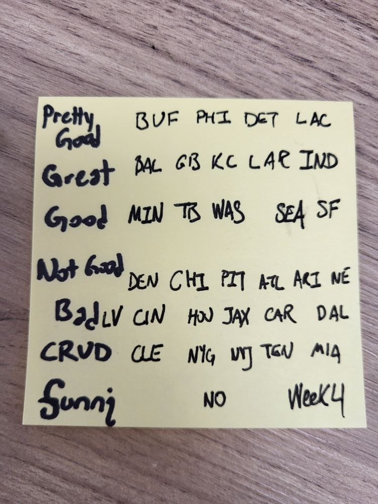 Its my week 4 football power rankings i made while waiting for coffee.