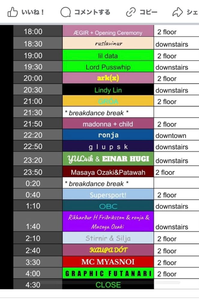 その後、エレクトロ・ミュージックのミニ・フェスみたいなのへ。なかなか面白そうなメンツで、エクスペリメンタルとインプロ中心で、かなりハードコアな音楽ファンでないとついていけないだろうというシロモノ(笑)。こんなに前衛なのは久々で、メチャ面白かった!時間きっちりの運営もよかった。