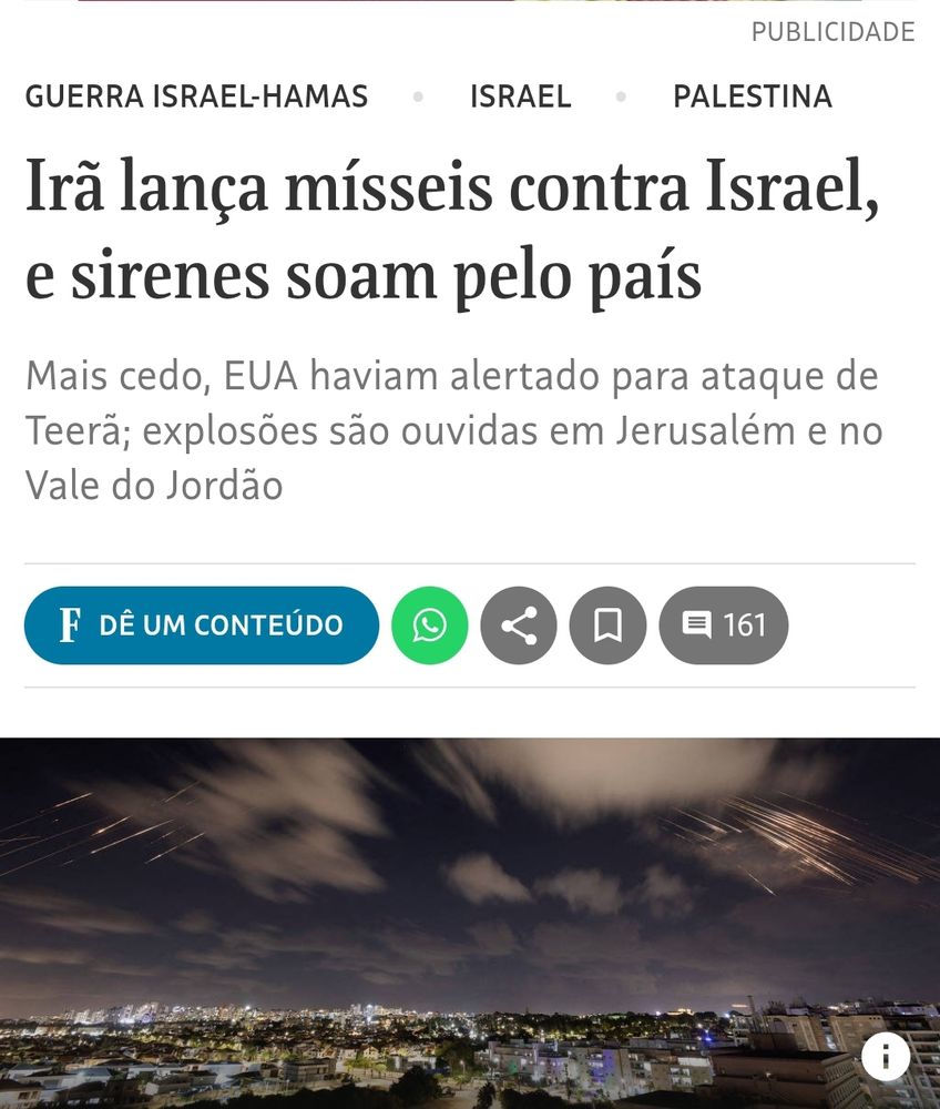 Se o Irã tiver mais alguns mísseis desse, ninguém mais dorme em Israel por um bom tempo.