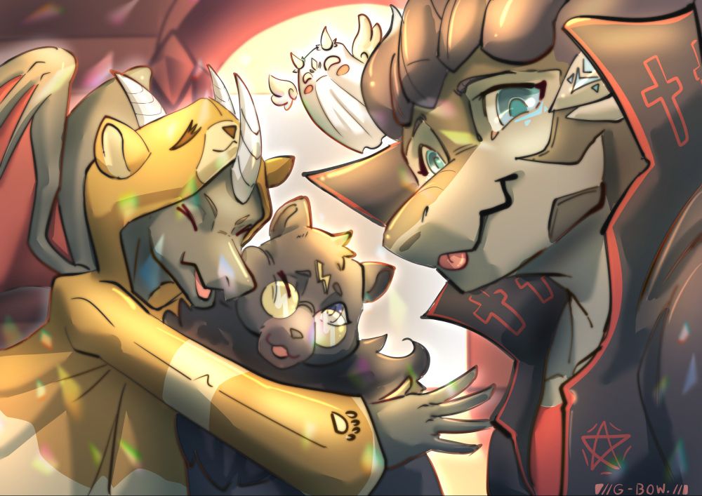 It looks like Zeo was captured by Cerberus. He was a dragon, but now he is Cerberus's little cub. Inspired by @shinyheartbeats.bsky.social