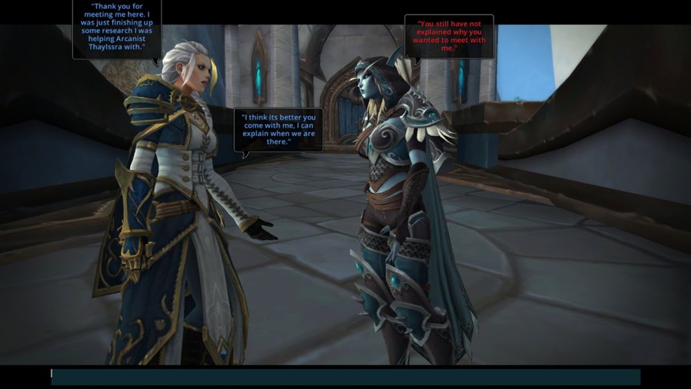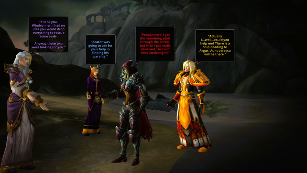 Arator asks for help in his search for his aunt Sylvanas and is directed to lady proudmoore and seals.