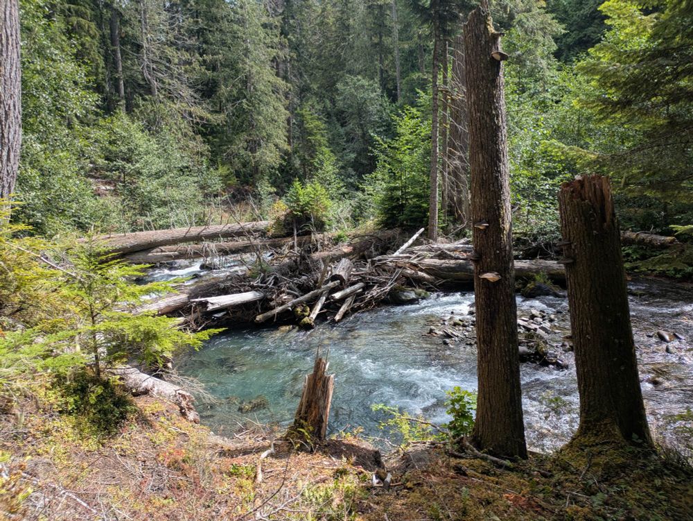 The tale of two halves: the first 50K of the race was very runnable, flowed great, mostly an out-and-back and a lollipop. Lush, mossy, fern-dense PNW forest along mount streams, with a brief peek onto the 3-o'clock ridge overlooking Buckhorn Wilderness