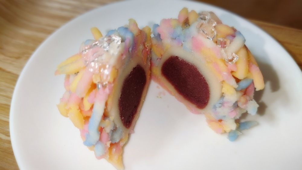御膳餡入りのこなし製で表面は肉桂で色付けされている。美味しい。