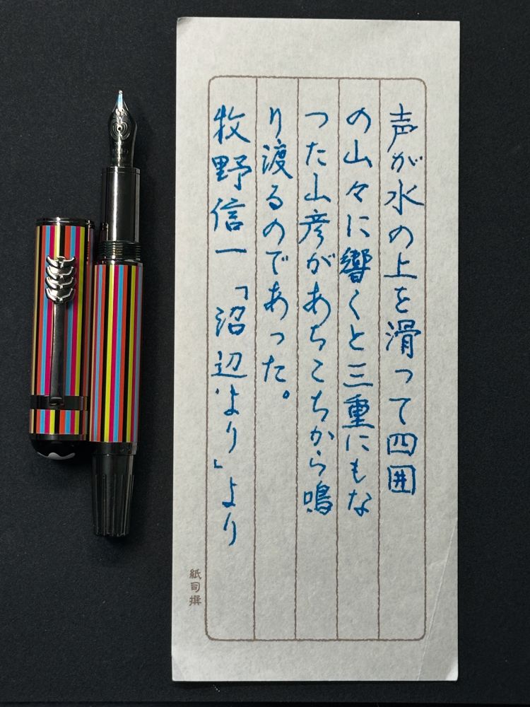 そんなわけで、金ペンの高騰もありほぼ毎年買っていたモンブランのグレードキャラクターズ(今年はQUEEN)の購入を諦めて、せめてインクだけでもと購入したインクを使いました。