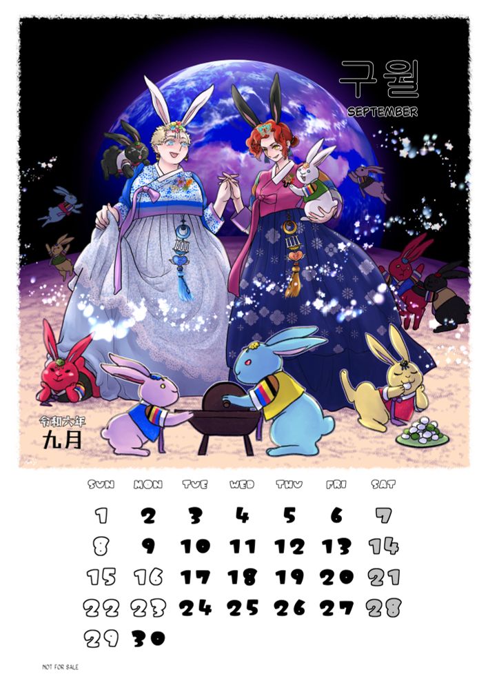 毎月描いている女性化😇と😈のカレンダーです。